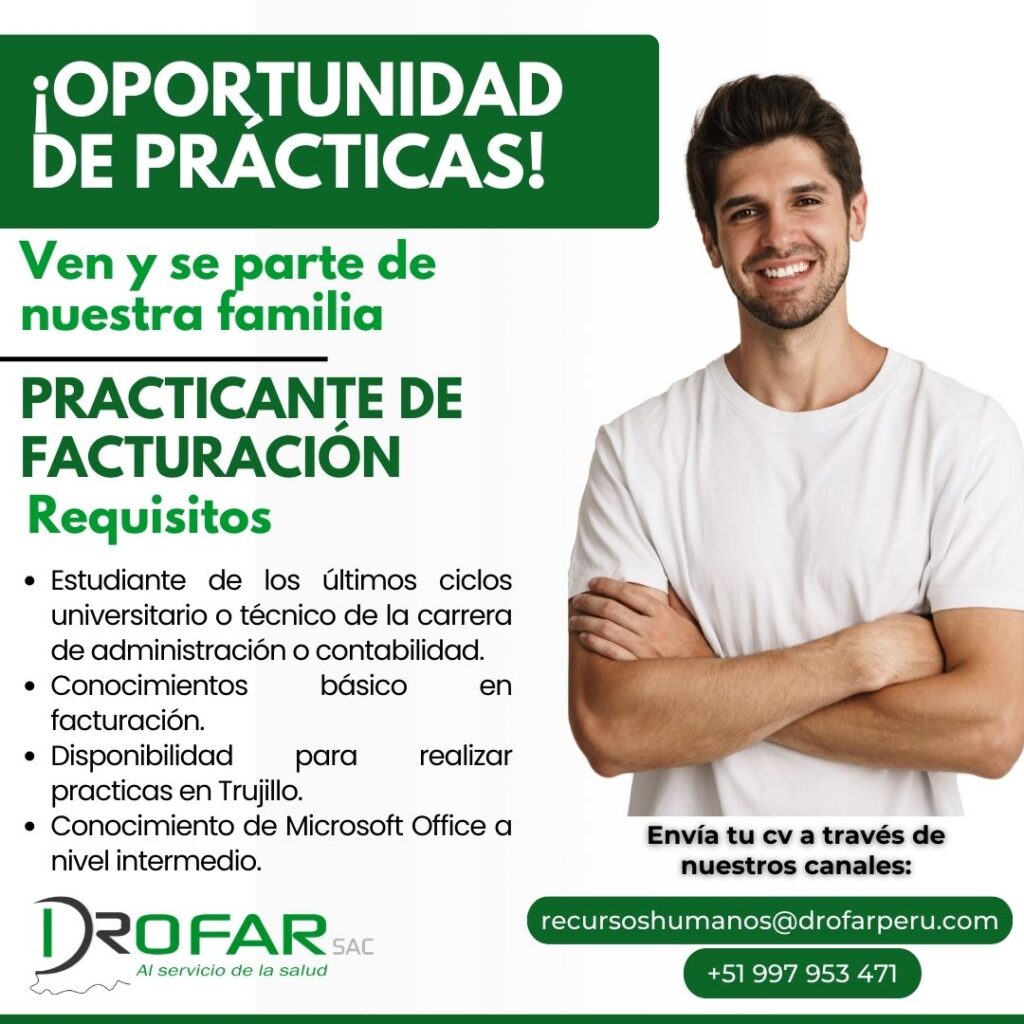 Si eres estudiante de los últimos ciclos de Administración o Contabilidad y deseas adquirir experiencia en el área de facturación, esta es tu oportunidad.